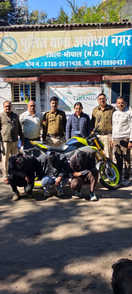 बरामद माल का विवरण – घटना मे प्रयुक्त एक होण्ड कंपनी की होर्नेट 125 गाडी ( कुल कीमत लगभग 1,50,000/- रूपये ) ।आरोपी – 01. शुभम मालवीय पिता स्व.राधेश्याम मालवीय उम्र-24 साल नि.ग्राम झागरिया सरकारी स्कूल के पास थाना कटारा हिल्स भोपाल