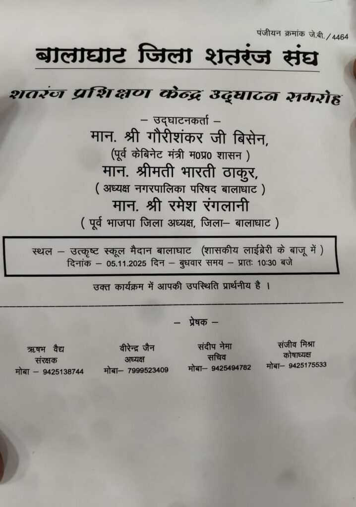 मोबा- 9425175533 तथा बालाघाट के प्रबुद्ध नागरिक और खेल प्रेमी कार्यक्रम में उपस्थित थे