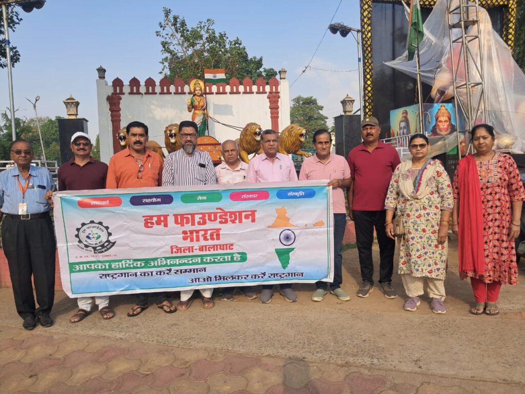(suryanshtimes)बालाघाट_ हम फाउंडेशन भारत के प्रदेश महासचिव युनुस खान पप्पा भाई ने बताया कि हम फाउंडेशन भारत एक सामाजिक सांस्कृतिक संगठन है।जो निरंतर बालाघाट जिले सहित पूरे प्रदेश में समाज सेवा के क्षेत्र में अग्रणी स्थान रखता है सामाजिक कार्यों में शैक्षणिक कार्यों में सांस्कृतिक कार्यों में भागीदार होकर राष्ट्र सेवा के माध्यम से आम जन में राष्ट्र प्रेम की भावना पैदा कर राष्ट्रगान कर लोगों को अनुशासित करने का लक्ष्य हम फाउंडेशन भारत ने राष्ट्रीय प्रकल्प के रूप में तय किया हुआ है। प्रदेश महासचिव युनुस खान ने बताया कि आज का राष्ट्रगान काली पुतली चौक में भारत माता प्रतिमा के सामने ५६ वा राष्ट्रगान का गायन।किया गया जिसे राष्ट्रीय अध्यक्ष एडवोकेट निशिकांत जी ने नाम दिया गया है “दो मिनट राष्ट्रगान आओ करे राष्ट्र का सम्मान”। जिसमें एनजीओ के सदस्य के अलावा रह चलते नागरिक भी शामिल होकर अपने आप को गौरवान्वित महसूस करते।है।समय इसका निर्धारित होता है और ठीक उसी समय पर बिना किसी के इंतजार में जितने भी लोग हो उनके द्वारा गायन किया जाता है।आज के राष्ट्रगान गायन में प्रदेश के महामंत्री युनूस खान प्रांतीय समग्र विकास संयोजक संतोष असाटी प्रदेश के सर्वश्रेष्ठ जिला अध्यक्ष श्याम कौशल शाखा अध्यक्ष शाखा संरक्षक सुभाष गुप्ता दिलीप वड़ीचार शाखा उपाध्यक्ष शिल्पा राउत सचिव चीनू जैन कोषाध्यक्ष राजेश गांधी महिला संयोजक खुर्शीद कुरैशी गिरधारी लाल जायसवाल प्रेमचंद सेर्वाइवार अकछीत जैन सामाजिक कार्यकर्ता गणेश अग्रवाल जी मौजूद थे।